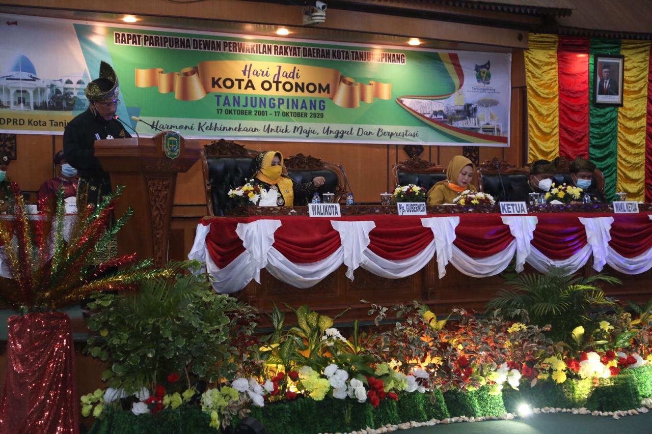 Tanjungpinang,suarakepri.com – Dalam rangka memperingati Hari Ulang Tahun (HUT) Kota Otonom Tanjungpinang yang ke-19 Tahun 2020, Dewan Perwakilan Rakyat Daerah (DPRD) Kota Tanjungpinang menggelar rapat Paripurna Istimewa dengan tema “Harmoni Kebhinekaan untuk Maju, Unggul dan berprestasi” yang dilaksanakan di Ruang Rapat Utama DPRD Kota Tanjungpinang, Senggarang, Sabtu (17/10) Pagi.