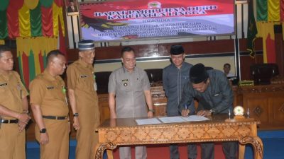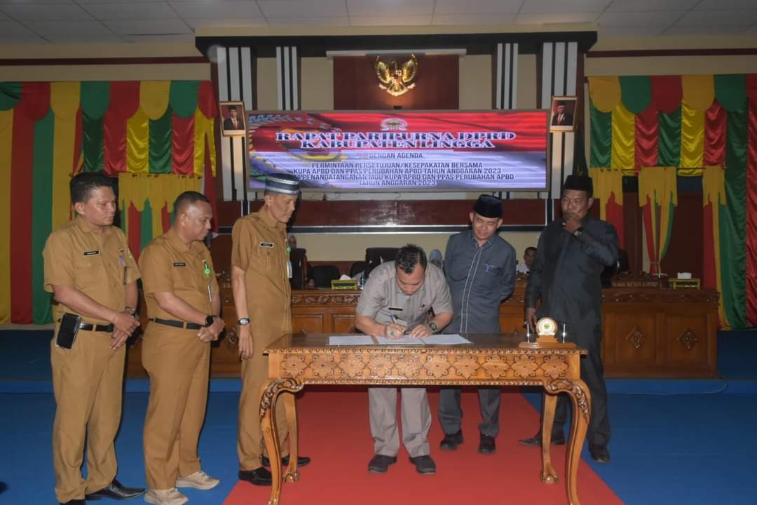 Bupati Lingga, Muhammad Nizar menandatangani Naskah kesepakatan APBD Perubahan
