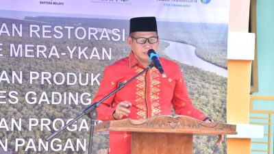 BENGKALIS, SuaraKepri.com – Wakil Ketua DPRD Kabupaten Bengkalis Sofyan dan Firman menghadiri kegiatan peluncuran restorasi mangrove, pengenalan produk ekonomi dari BUMDes Gading Emas serta peluncuran program ketahanan pangan, Senin (27/3/2023), di Halaman Masjid Darul Hasan Desa Teluk Pambang.