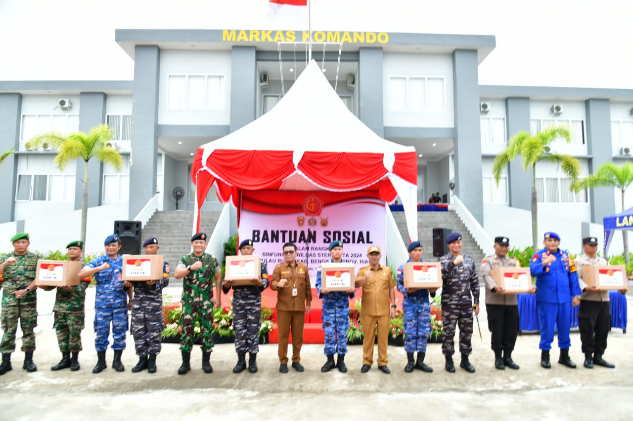 BENGKALIS, SuaraKepri.com – Bupati Bengkalis Kasmarni, diwakili Wakil Bupati H Bagus Santoso menghadiri seremonial Pelepasan serta Penyerahan Bantuan Sosial kepada Masyarakat Pulau Rupat, dalam program Pembinaan Fungsi Perbatasan Wilayah Nasional (Binfungtaswilnas) tahun 2024, oleh Aster Panglima TNI Mayjen TNI Novi Helmy Prasetya, S.I.P., M.I.P.,  diwakili Paban VI/Taswilnas Ster TNI Kolonel Laut (P) Arief Budiman, M.Tr.Opsla, di Halaman Mako Lanal Dumai, Selasa, 7 Mei 2024.