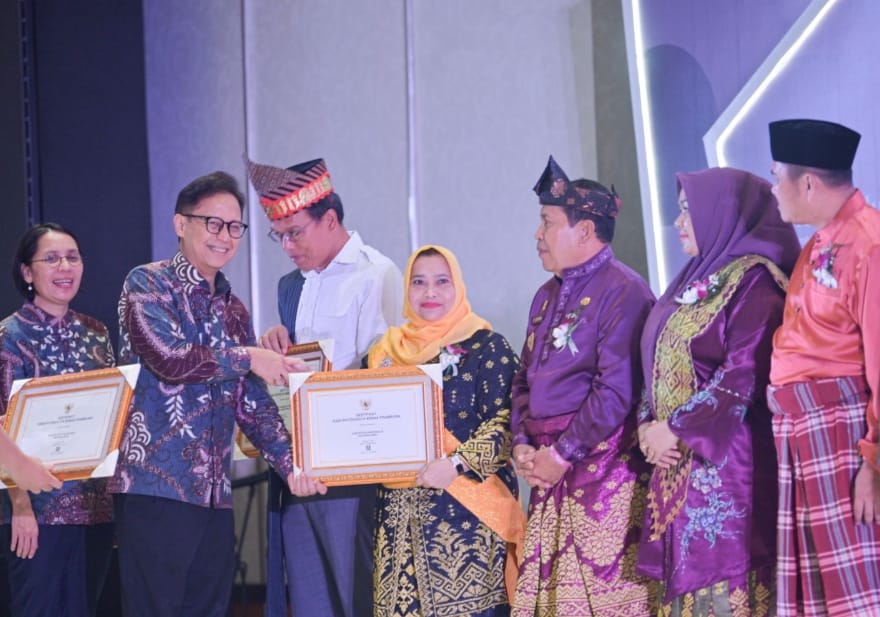 Sertifikat diterima oleh Bupati Bengkalis Kasmarni dari Menteri Kesehatan Republik Indonesia Budi Gunadi Sadikin.