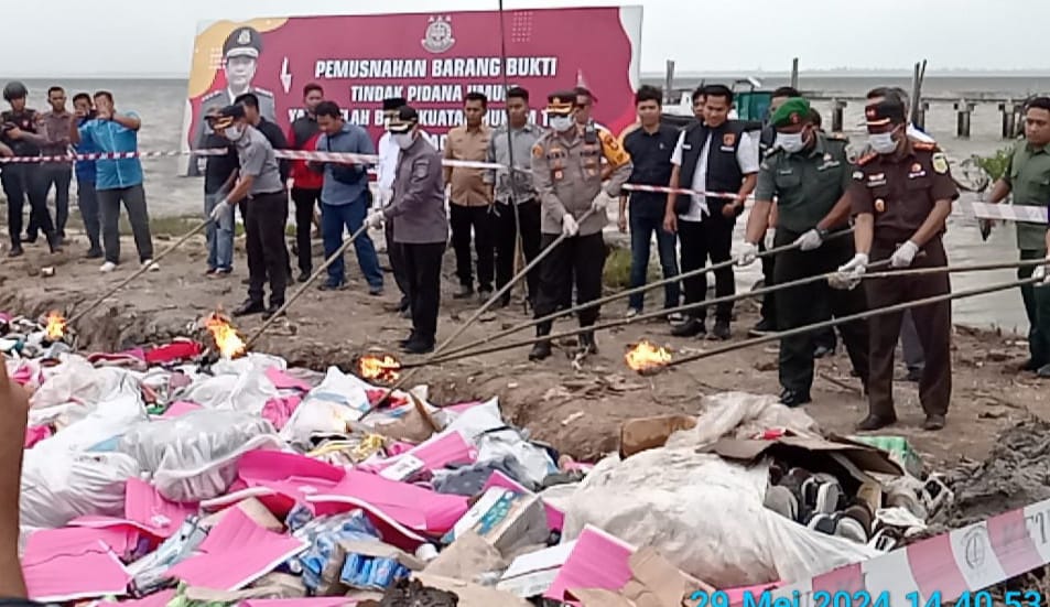 BENGKALIS, SuaraKepri.com – Dalam rangka penyelesaian penanganan perkara tindak pidana terhadap pelaksanaan eksekusi barang bukti atas putusan pengadilan yang sudah memperoleh kekuatan hukum tetap (inkracht), Kejaksaan Negeri (Kejari) Bengkalis musnahkan 113 barang bukti, di halaman belakang Coffe Shop Citra, di Jalan Bengkalis, Kelurahan Rimba Sekampung, Rabu (29/5/2024).
