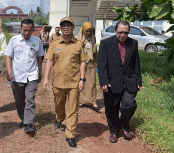 Wabup Bengkalis, H Bagus Santoso (tengah) Berjalan Menuju ke Pembangunan Masjid di STAIN./Ist
