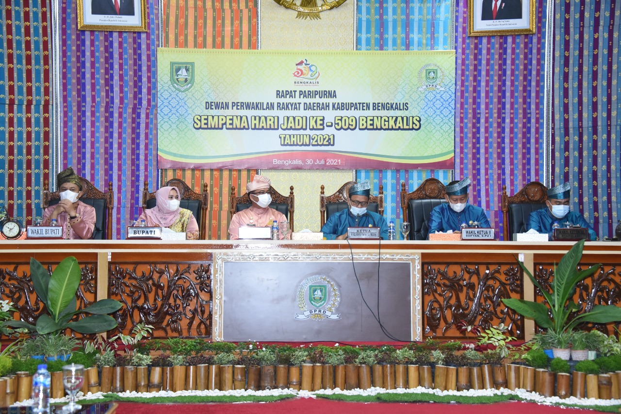 BENGKALIS, SuaraKepri.com – Dewan Perwakilan Rakyat Daerah (DPRD) Kabupaten Bengkalis menggelar Rapat Paripurna Sempena Hari Jadi ke-509 Bengkalis tahun 2021, dilaksanakan di Lantai II Kantor DPRD Bengkalis, Jalan Antara Bengkalis, Jumat (30/7/2021).