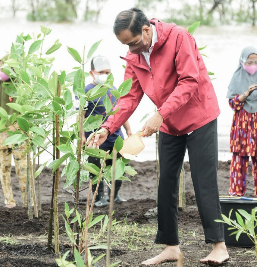 Presiden Jokowi menegaskan kehadiran hutan mangrove ini memberikan dampak positif bagi ekosistem, terutama hutan mangrove ini menyimpan karbon yakni 4 sampai 5 kali lipat lebih banyak dari hutan tropis daratan.