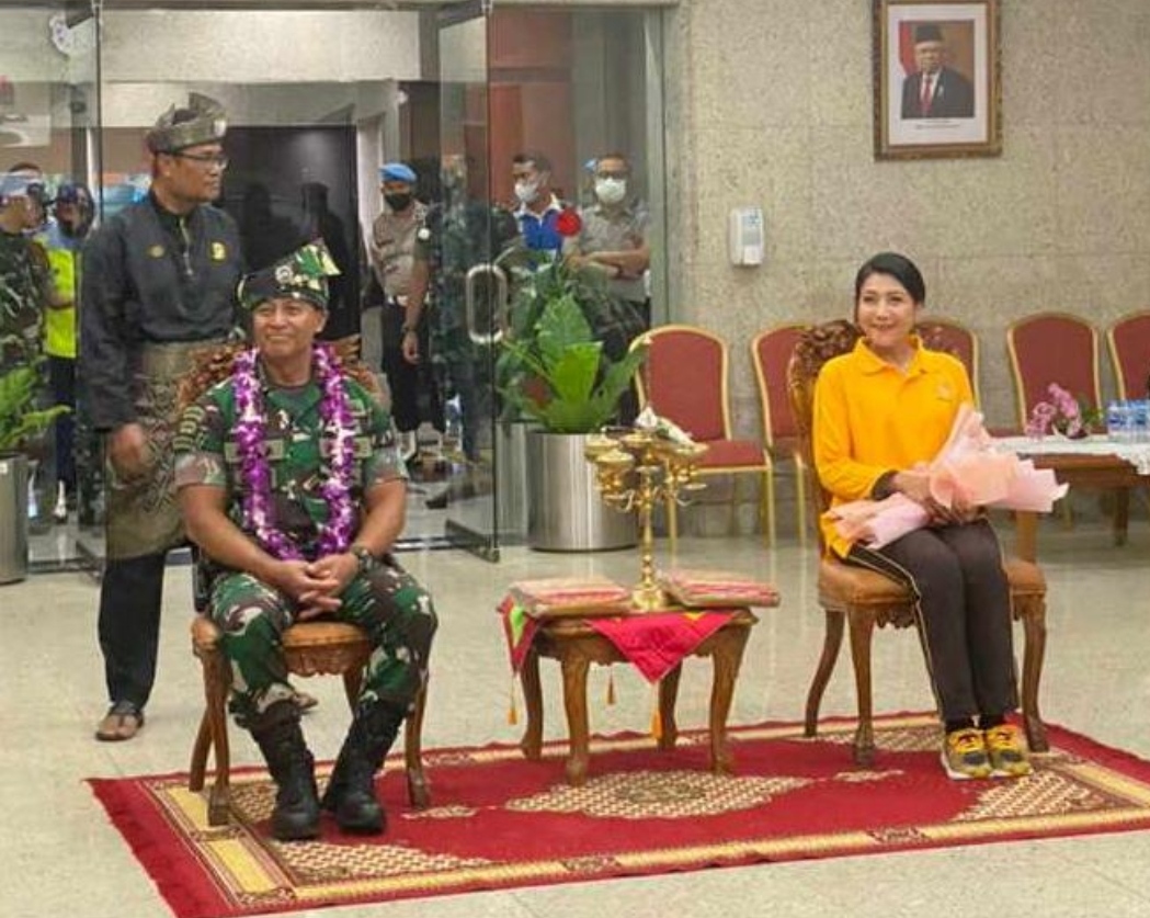 Panglima TNI Jenderal Andika Perkasa tiba di Bandara Internasional Hang Nadim sekitar pukul 17.30 wib. Disambut dengan tarian penyambutan dan tepung tawar dari Lembaga Adat Melayu (LAM) Kota Batam.