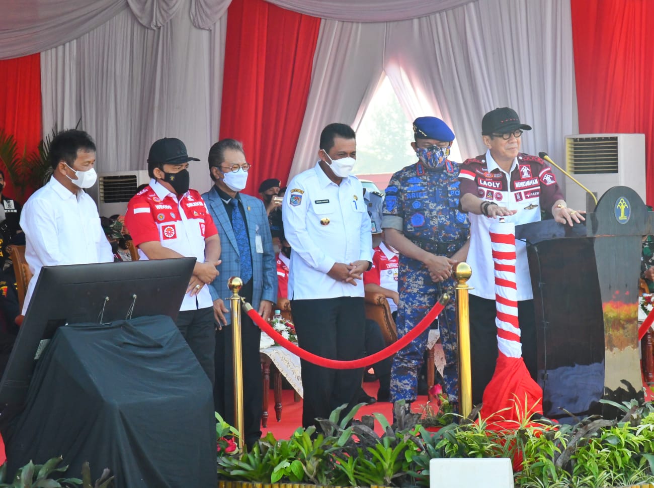 Batam, SuaraKepri.com – Gubernur Kepulauan Riau Ansar Ahmad  mendampingi Menteri Hukum dan Hak Azasi Manusia (Menkumham) RI Yasona Laoli menghadiri peringatan Hari Bhakti Imigrasi ke-72. Peringatan ditandai dengan  Apel Nasional Gabungan  Imigrasi, TNI, Polri dan Instansi Terkait Pengawasan Dalam Rangka Penegakan Hukum Keimigrasian di Pelabuhan Bintang 99 Batu Ampar Kota Batam, Rabu (19/1).