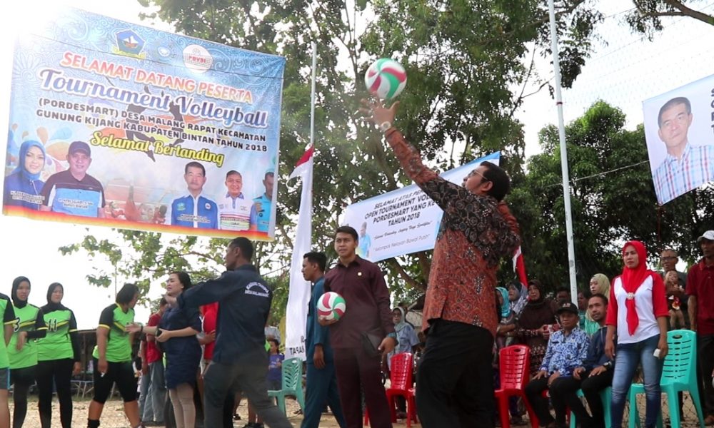 Pembukaan turnamen Bola Volley juga ditandai dengan pemukulan bola perdana oleh Bupati Bintan H Apri Sujadi, S.Sos dan Ketua TP PKK Kabupaten Bintan Ibu Hj Deby Maryanti. Dalam sambutannya, Bupati Bintan H Apri Sujadi, S.Sos menyampaikan bahwa dirinya sangat mengapresiasi kerja keras seluruh panitia desa yang telah berhasil melaksanakan turnamen hingga tahun ke 10.