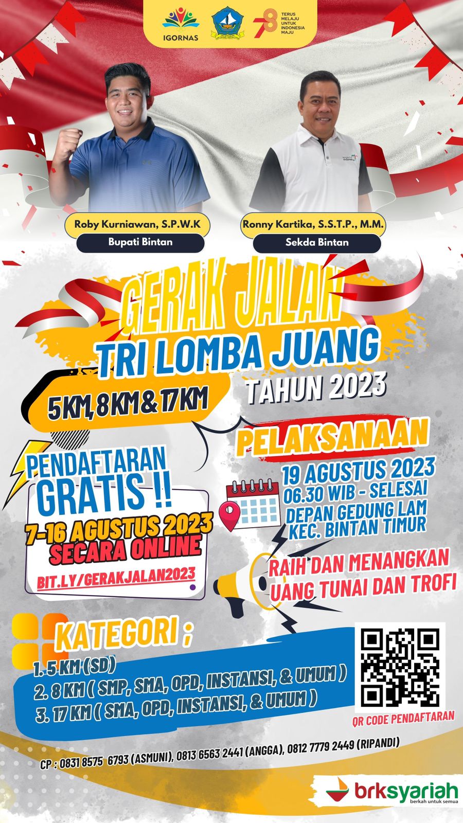 “sesuai arahan pak Bupati Bintan, Roby Kurniawan rencananya Lomba Gerak Jalan Tri Lomba Juang sempena HUT Kemerdekaan RI ke 78 tahun 2023 ini, rencananya akan diselenggarakan di Kecamatan Bintan Timur,” ujar Sekda Kab Bintan, Ronny Kartika usai memimpin rapat persiapan