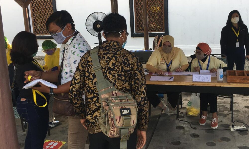 Para awak media undangan konfrensi pers, wajib menjalankan Rapid Test, yang dimulai pukul 07.00 Wib sampai 08.00 Wib.