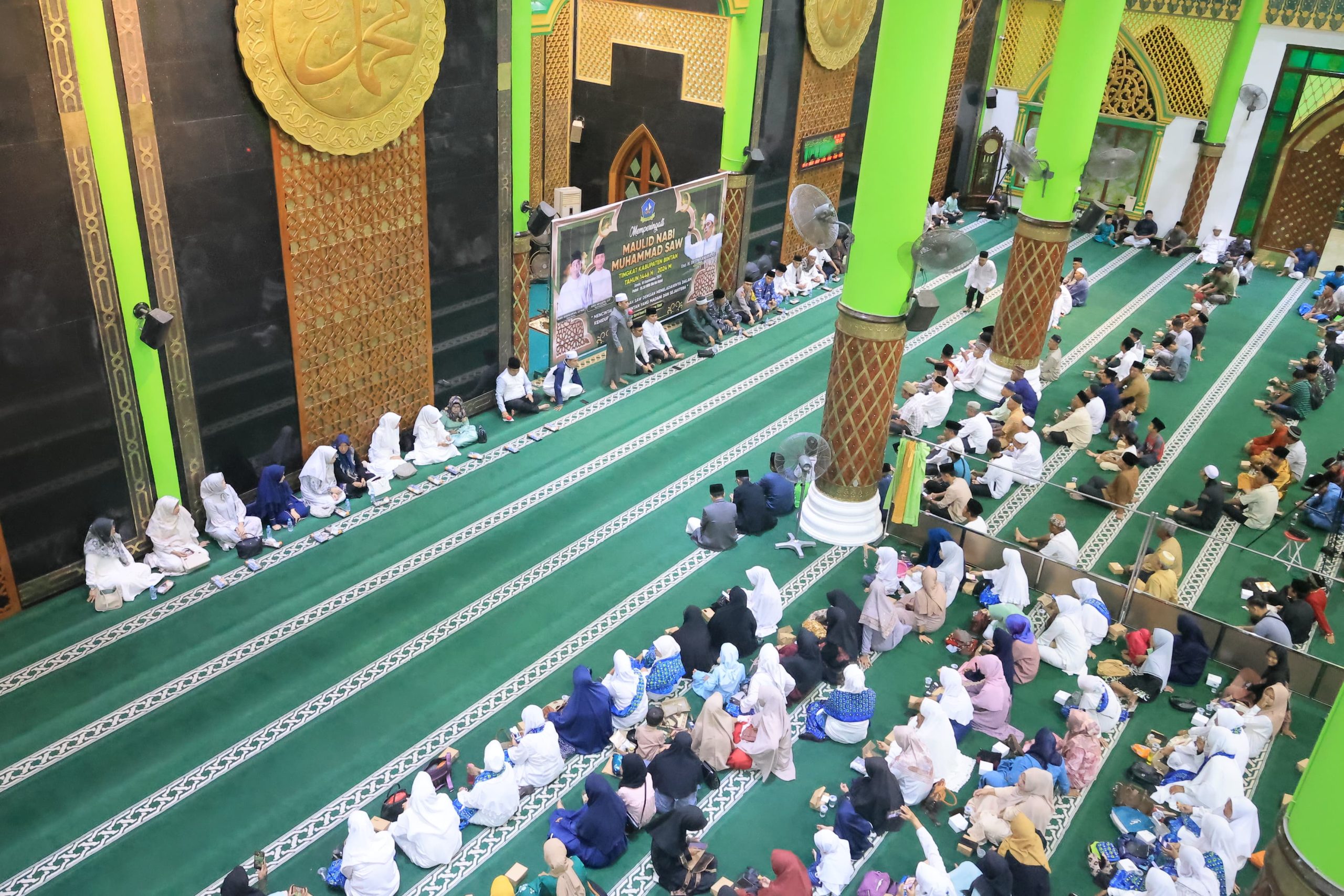 Pemerintah Kabupaten Bintan menggelar Tabligh Akbar dalam rangka memperingati Maulid Nabi Muhammad SAW 1446 H pada Senin malam (16/09) di Masjid Besar Nurul Iman, Kijang Kota. /F: Ist