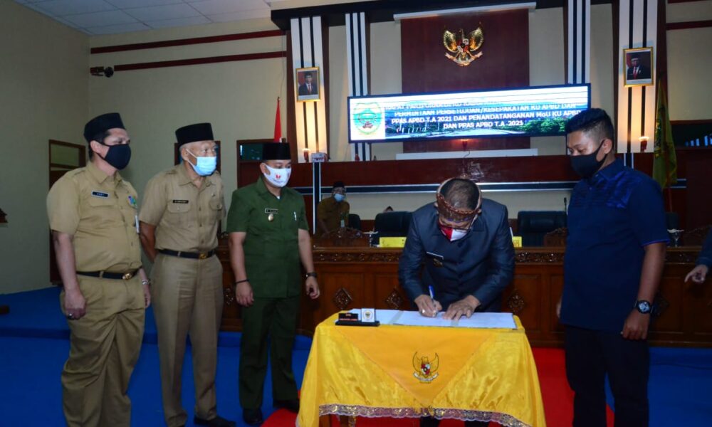 “Kami juga menyampaikan terima kasih kepada pimpinan serta anggota DPRD, karena telah mendatangani nota kesepakatan kebijakan umum anggaran dan prioritas plafon anggaran sementara tahun anggaran 2021. Dengan demikian kita telah melalui tahapan penting dalam siklus pembangunan daerah”, Awe mengungkapkan.