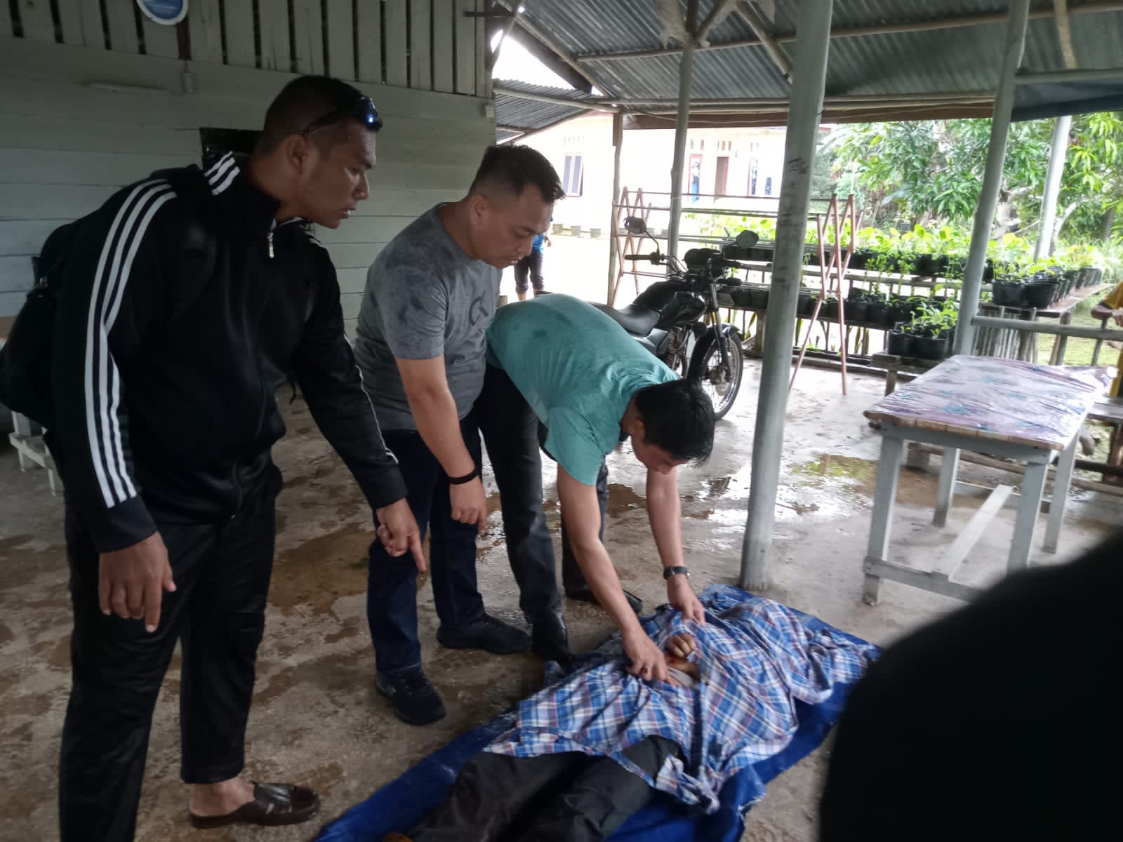 Sementara itu, terlihat Bupati Lingga M. Nizar dan Kepala Inspektorat dan Sekwan Lingga membantu pengendara yang diduga meninggal di tempat.