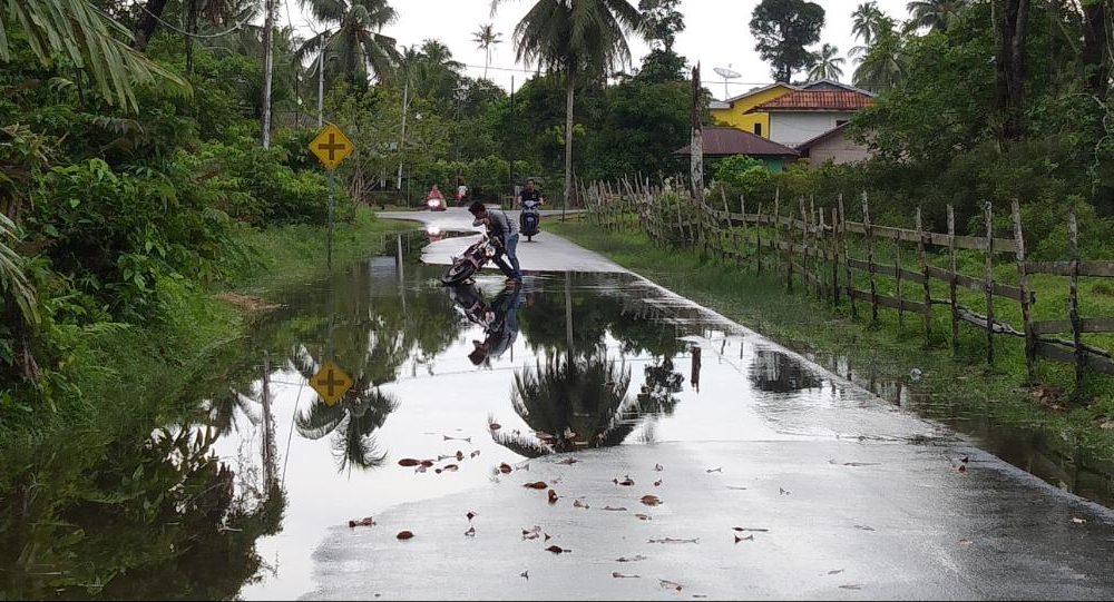 “Sering banjir, satu harian saja hujan dah macam gitu lah jalan,” katanya saat dikonfirmasi suarakepr.com.