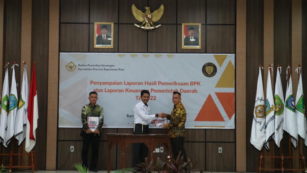 Badan Pemeriksa Keuangan (BPK) Perwakilan Provinsi Kepri telah menyampaikan laporan hasil pemeriksaan terhadap laporan keterangan pertanggungjawaban Kabupaten Kota se-Provinsi Kepri pada Rabu, 12 April 2023, di Kantor BPK Perwakilan Provinsi Kepri. Bupati Lingga M. Nizar, S. Sos secara langsung menerima LHP BPK dan menyampaikan rasa terimakasih kepada seluruh OPD yang terkait, Rabu (12/04/23)./Ist