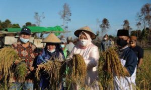 Lingga – Wakil Gubernur Kepri Marlin Agustina panen padi dari varietas ketan tolo di Desa Kerandin, Kecamatan Lingga Timur, Lingga. Panen perdana padi diatas lahan 1 hektare ini menghasilkan 2,1 ton gabah.