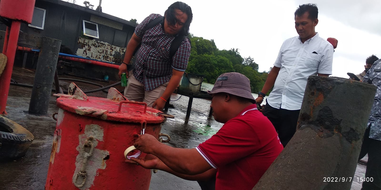 Atas temuan BBM solar di salah satu tongkang milik PT.Sinar Singkep Sejahtera, Asisten II Pemkab Lingga itu dengan di dampingi oleh APH langsung menyegel kunci tongkang tersebut.