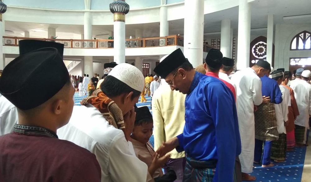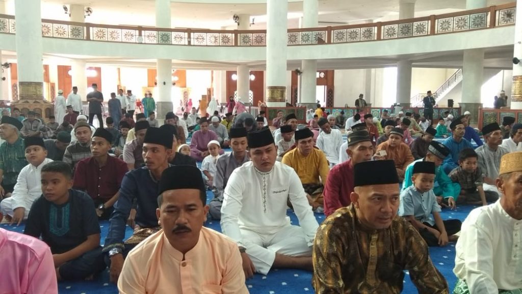Natuna – Bupati Natuna, Drs H Abdul Hamid Rizal, M.Si, dan Wakil Bupati Natuna, Dra Hj Ngesti Yuni Suprapti, M.A, melaksanakan Shalat Idul Fitri 1Syawal 1440 H Tahun 2019, yang jatuh pada hari Rabu, (05/06/2019) bertempat di Masjid Agung Natuna Gerbang Utaraku (NGU) – Ranai.