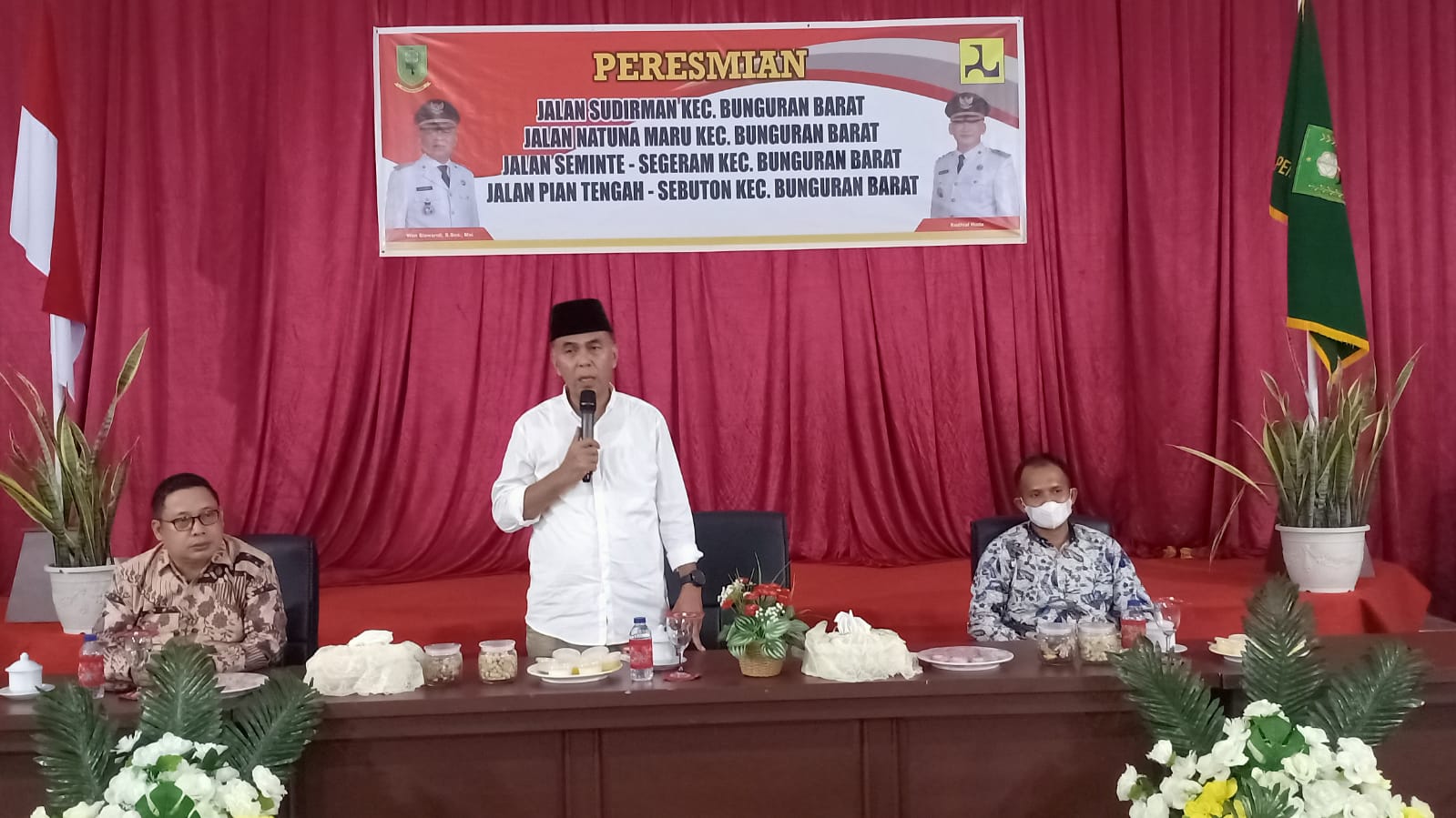Peresmian tersebut, adalah hasil dari pembangunan jalan dan gedung dari kegiatan pemerintah daerah pada tahun 2021 lalu. diantaranya Jalan Sudirman, Jalan Natuna Maru, Jalan Seminte sampai Segeram, Jalan Pian Tengah sampai Sebuton. Kemudian peresmian gedung baru Balai Penyuluhan Keluarga Berencana.