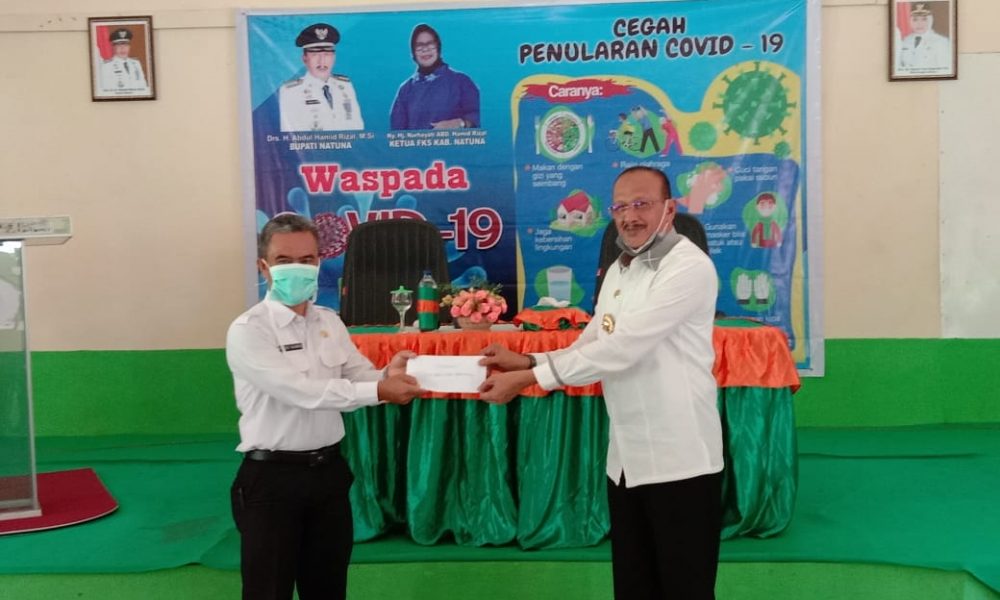 Natuna, suarakepri.com – Bantuan pangan yang diserahkan secara simbolis ini merupakan bentuk tanggungjawab pemerintah daerah terhadap dampak dari kebijakan pemerintah dalam memutus mata rantai penyebaran Covid-19.
