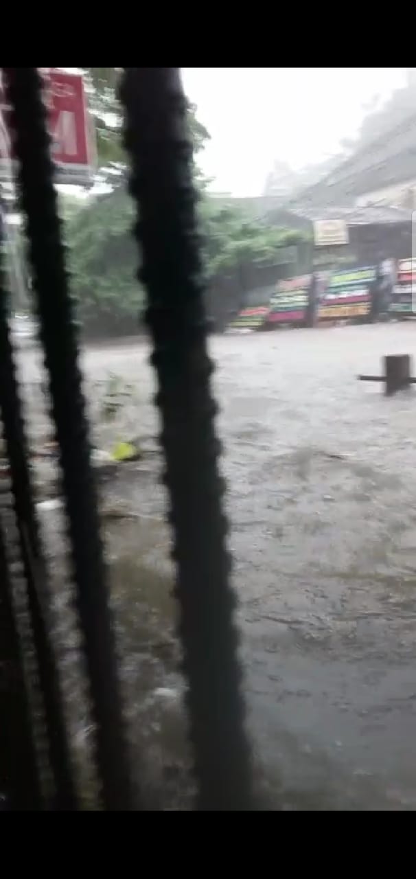 Menurut salah seorang pedagang, Rudi (29) hujan terjadi sejak pukul dua belas siang. Kemudian lama kelamaan hujan pun memenuhi tempat saluran air besar di depan Pertamina di Jalan Ir, Sutami, Suka Berenang.