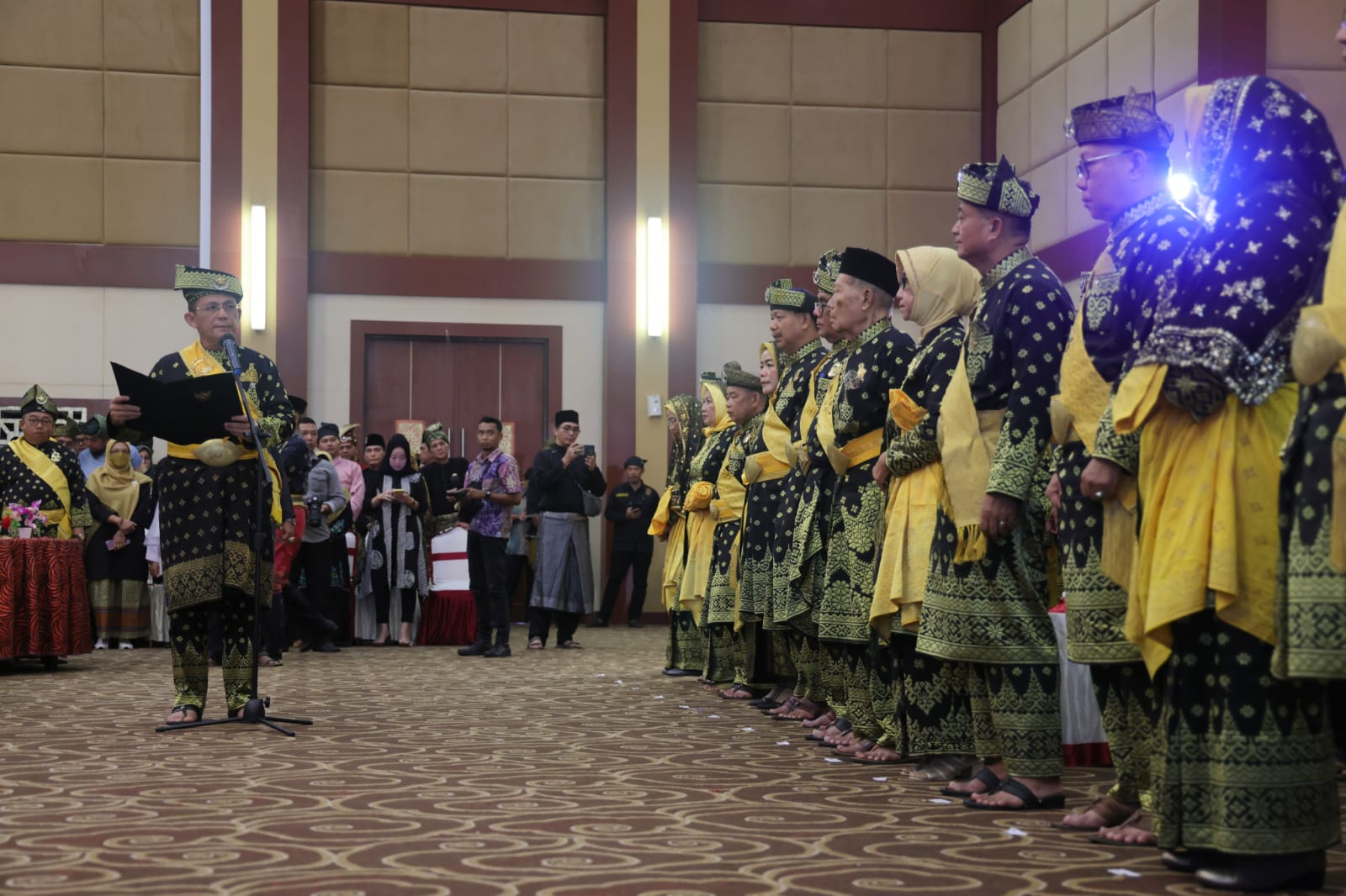 Gubernur Kepulauan Riau H. Ansar Ahmad selaku Ketua Dewan Pembina Lembaga Adat Melayu (LAM) Kepri mengukuhkan pengurus LAM Kepri Masa Khidmad Tahun 2022-2027, di Aula Wan Seri Beni, Tanjungpinang, Kamis (15/06). Datok Seri Setia Utama H. Abdul Razak kembali terpilih menjadi Ketua Umum LAM Kepri. (Jlu)