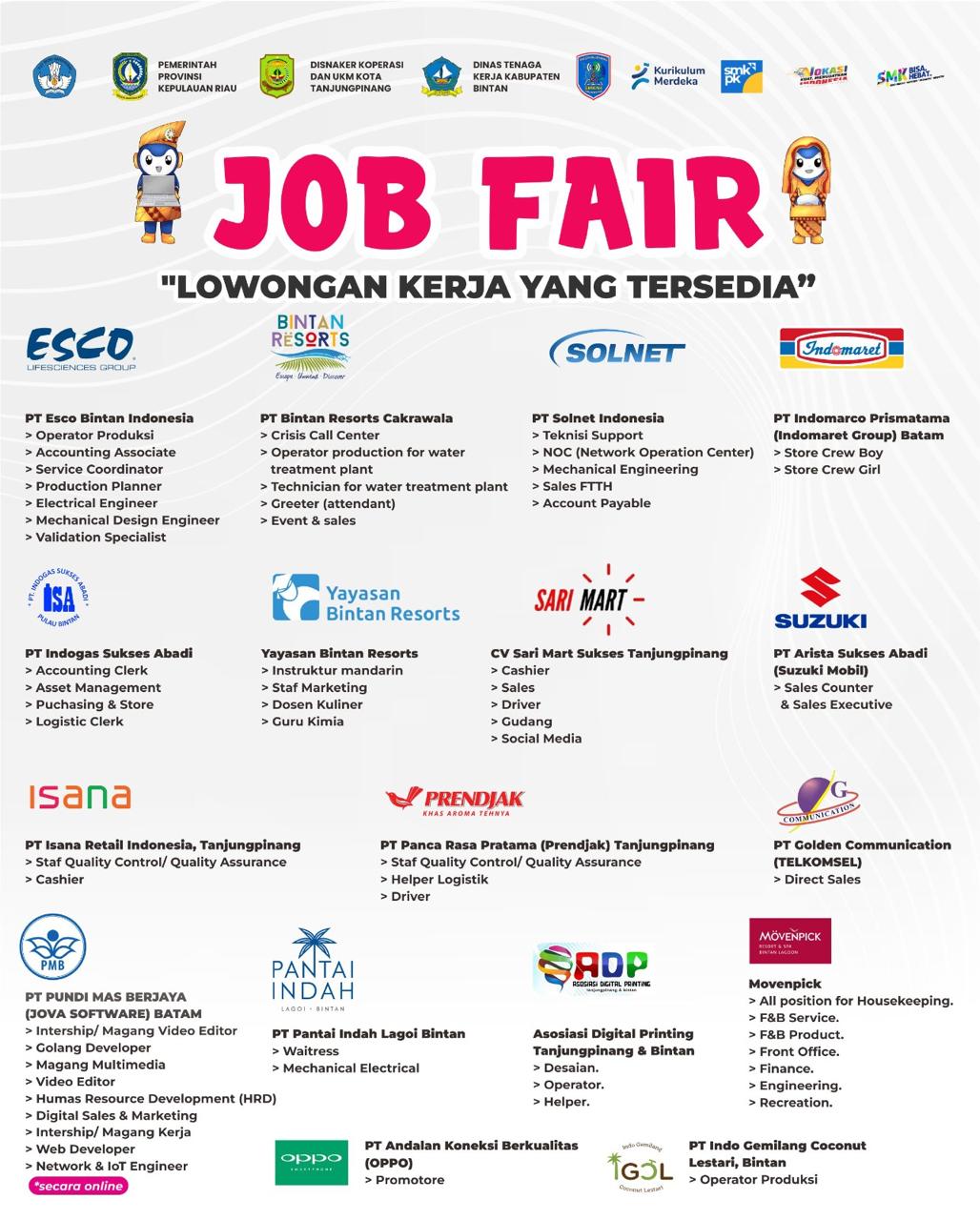 Event ini menggandeng 16 perusahaan dari Tanjungpinang dan kawasan Bintan seperti Lobam dan Lagoi, serta melibatkan Dinas Ketenagakerjaan Tanjungpinang dan Bintan. Dalam job fair, para peserta berkesempatan untuk langsung mengikuti wawancara kerja dengan berbagai perusahaan yang tengah mencari talenta baru, baik secara offline maupun online.