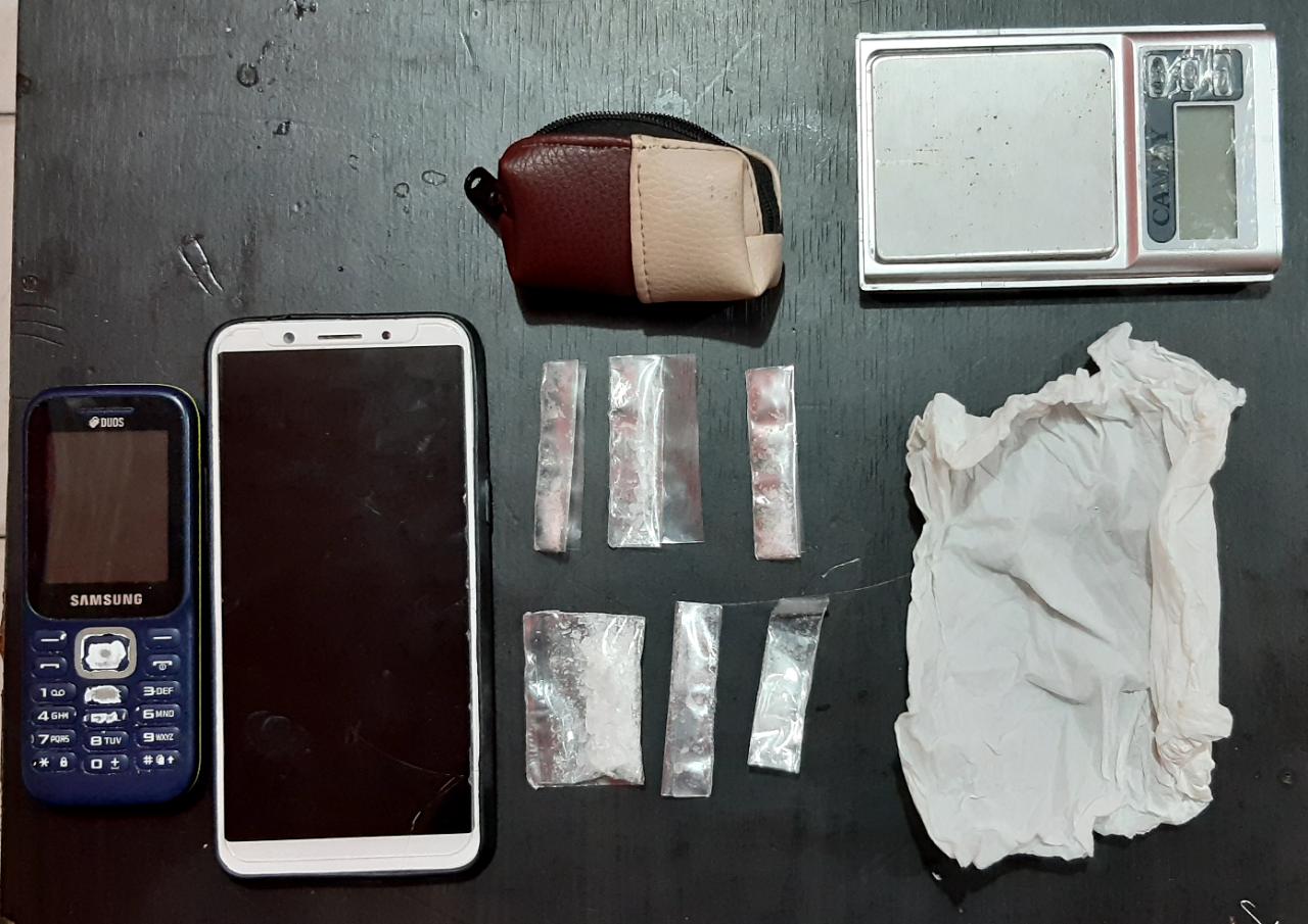 “Saat dilakukan penggeledahan yang disaksikan oleh ketua RT setempat, berhasil diamankan barang bukti berupa 6 (enam) paket diduga sabu, 1 (satu) lembar Tissu, 2 (dua) HP Samsung, 1 (satu) dompet merah coklat, dan 1 (satu) buah timbangan,” ucap KasatRes Narkoba, AKP Ronny B, SH.