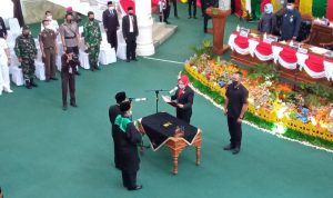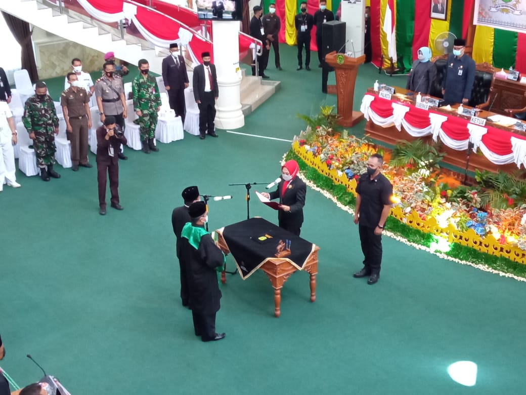 Juramadi berharap kepada anggota DPRD yang baru dilantik agar dapat meningkatkan kinerja dalam menghadapi tantangan besar di masa pandemi Covid-19 yang belum selesai.