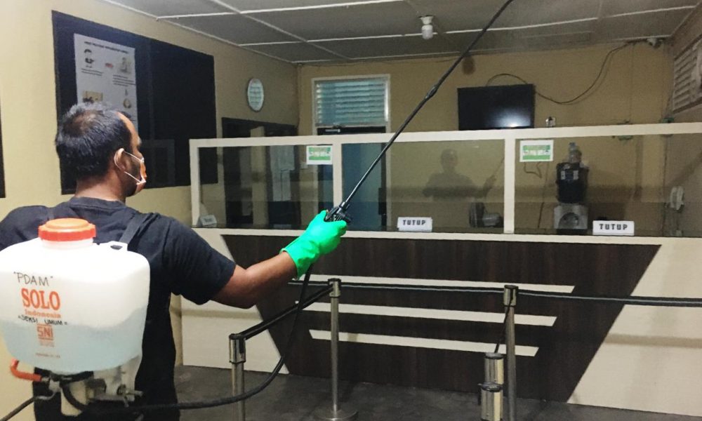 Penyemprotan desinfektan ini dilakukan oleh beberapa pegawai PDAM secara internal pada Kamis malam (26/03), saat pegawai lainnya usai beraktivitas.