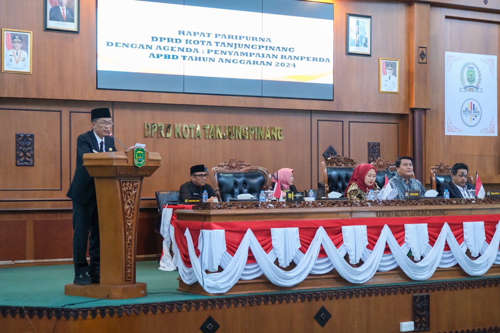 Tanjungpinang, SuaraKepri.com – DPRD Kota Tanjungpinang, menggelar rapat paripurna dengan agenda penyampaian ranperda tentang APBD beserta nota keuangan Kota Tanjungpinang, tahun anggaran 2024, Senin (20/11/2023).