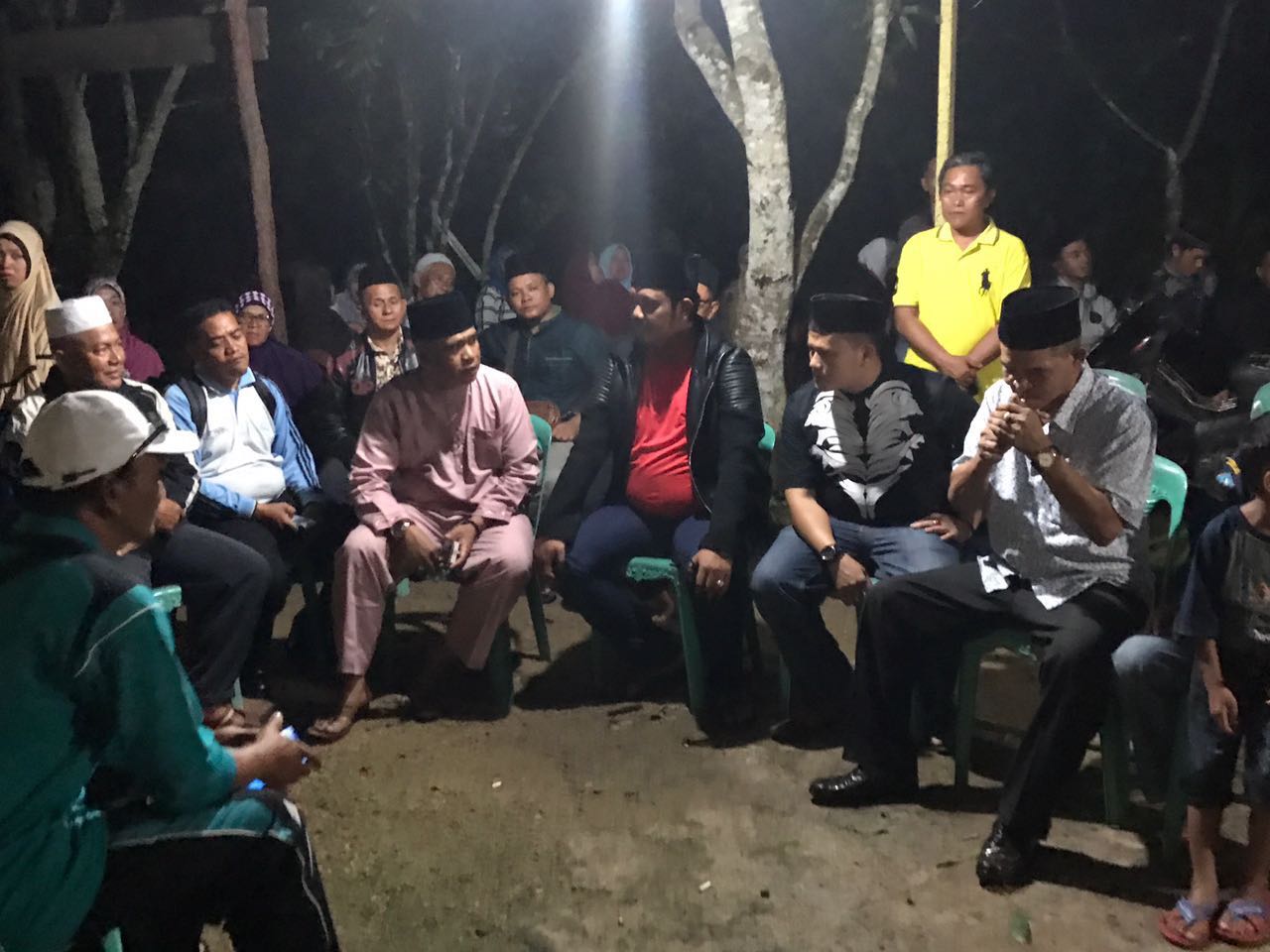 Didampingi beberapa orang rombongan, Bupati Bintan tampak khusyu’ membacakan Surah Yassin bersama pelayat lainnya.