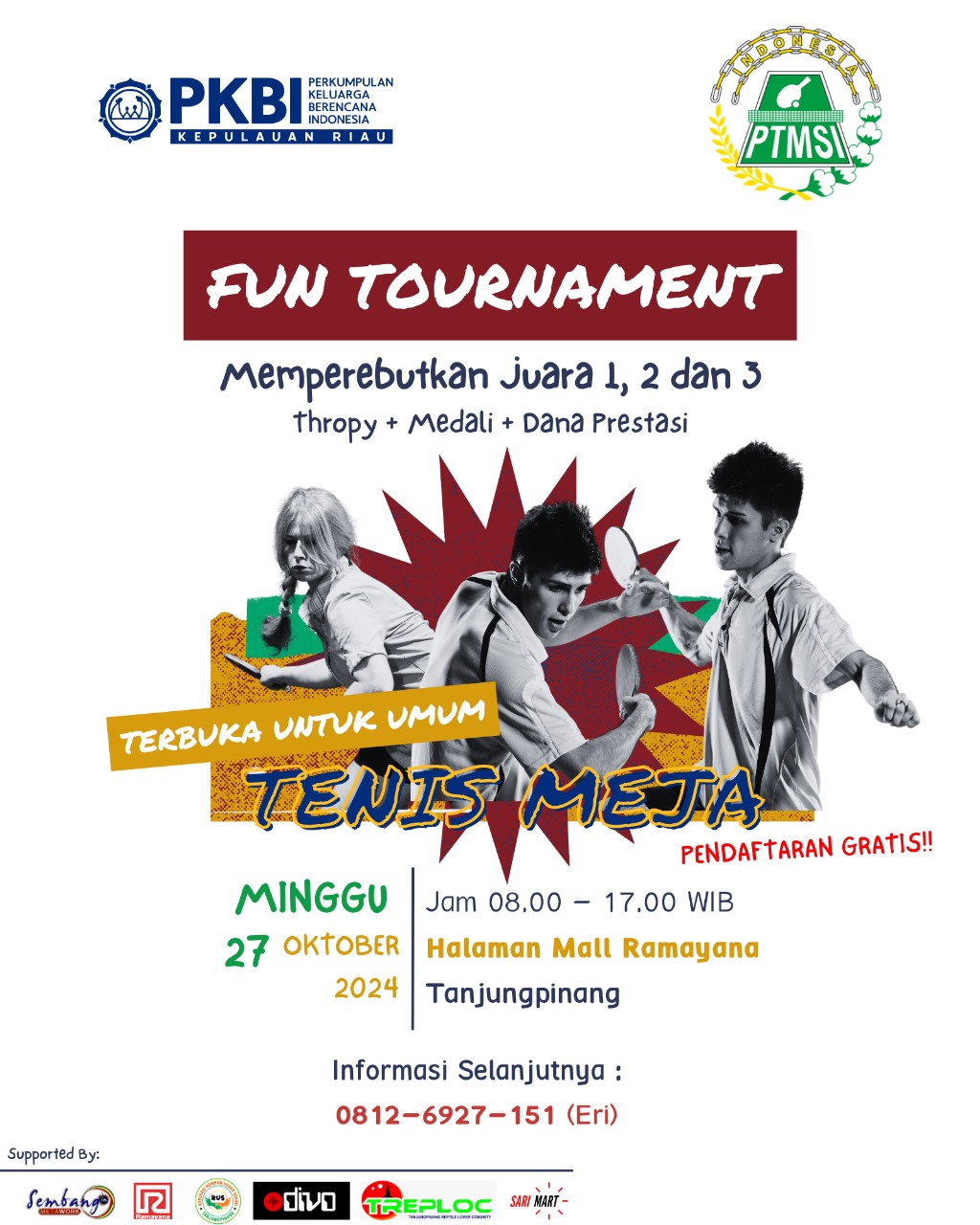 “Setelah sukses menggelar Fun Pingpong yang disambut antusias masyarakat, kali ini kami menghadirkan turnamen yang lebih kompetitif. Para pemenang akan memperebutkan trophy, medali, serta dana prestasi untuk juara 1, 2, dan 3,” ujar Putra.