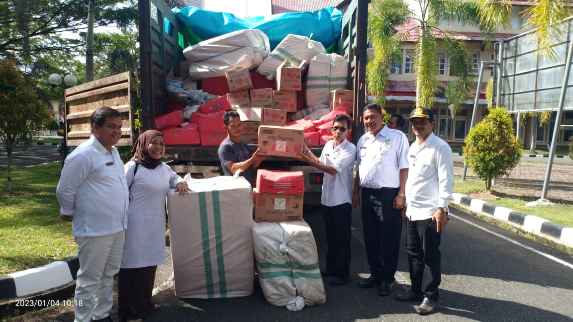 Adapun barang bantuan bencana berupa perlengkapan bahan makanan, peralatan evakuasi, Sandang dan perlengkapan keluarga dari gudang Kemensos Regional Barat di Palembang.