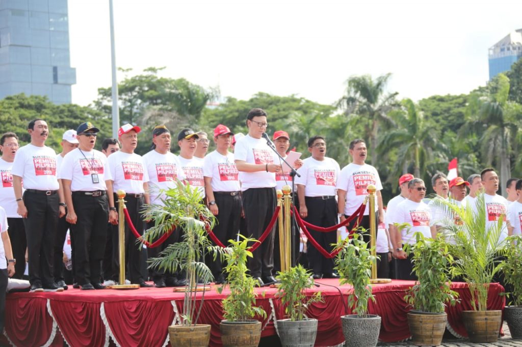 Apel dipimpin langsung Menteri Dalam Negeri (Mendagri) Tjahjo Kumolo dengan pembacaan Ikrar Komitmen Kemendagri dan BNPP untuk turut serta menyukseskan Pemilu serentak 2019. Ikrar tersebut berbunyi: